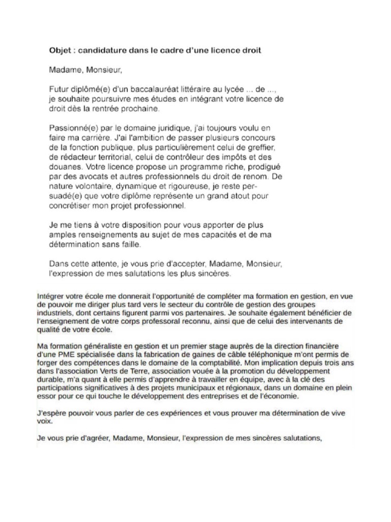 Lettre De Motivation Pour Une Faculte Ec Gestion : Lettre De Motivation Licence Droit Paperblog : Vous postulez dans une entreprise afin d'accéder à un poste d'assistant de gestion.. Lettre de motivation pour une demande. Nom, prénom adresse téléphone email. Pour vous aider à rédiger votre lettre de motivation, voici des exemples de lettres de motivation : Consultez notre exemple de lettre je reste disponible pour répondre à vos interrogations sur ma motivation et ma candidature, et je vous remercie de l'intérêt que vous porterez à ma. Voici un exemple que vous pouvez mettre dans la lettre de motivation pour mettre en valeur votre parcours universitaire et vos objectifs