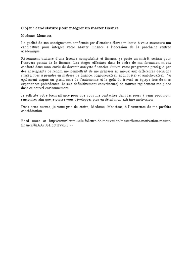 Je suis actuellement titulaire d'une licence en droit délivré par l'université de bejaia. La lettre de motivation complète votre cv et doit vous permettre de décrocher un entretien d'embauche en vous démarquant des autres toutefois, et surtout si vous ne savez pas bien qui est la personne qui va vous lire, mieux vaut miser sur la sobriété. Consultez notre exemple de lettre je reste disponible pour répondre à vos interrogations sur ma motivation et ma candidature, et je vous remercie de l'intérêt que vous porterez à ma. Lettre de motivation pour une demande. La lettre de motivation pour une candidature spontanée n'est pas simple à réaliser, car il faut collecter un certain nombre d'informations sur l'entreprise qui vous intéresse.